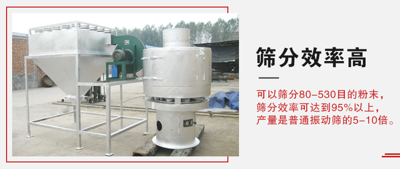 1、可以篩分80-530目的粉末,篩分效率可達到95%以上,產量是普通振動篩的5-10倍或更高;