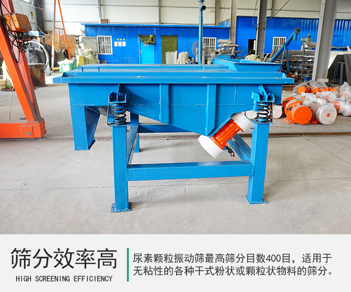 尿素顆粒振動篩最高篩分目數400目,適用于粒度在0.074-5mm,含水量小于7%,無粘性的各種干式粉狀或顆粒狀物料的篩分,給料粒度不大于10mm,非常適合對尿素顆粒進行分級除雜。