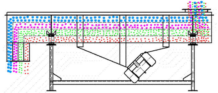 直線型振動篩兩電機軸相對篩面有一傾角,在激振力和物料自重力的合力作用下,物料在篩面上被拋起跳躍式向前作直線運動,從而 達到對物料進行篩選和分級的目的。可用于流水線中實現自動化作業。